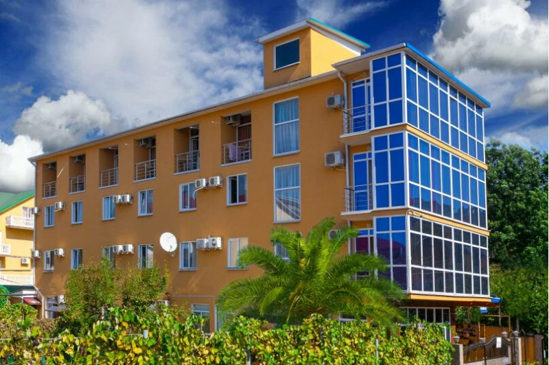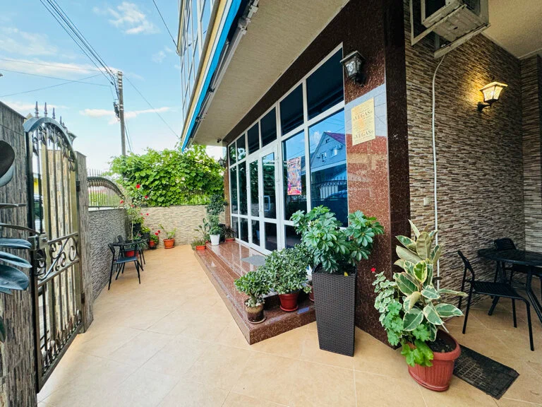 Современный гостевой дом «Вегас» расположен в Адлере в 4-5 минутах ходьбы от пляжа. Рядом расположены кафе, магазины, аптека, остановка общественного транспорта.